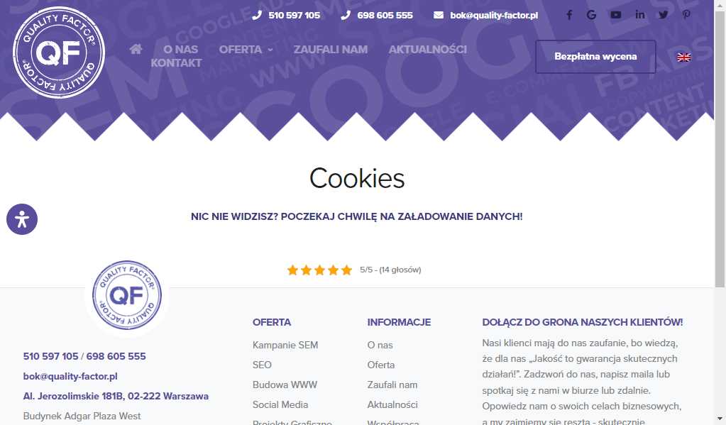 Quality Factor to zespół ekspertów, którzy od lat wspierają organizacje w budowaniu stabilnych, skutecznych i zgodnych z wymaganiami systemów zarządzania. Specjalizujemy się w doradztwie, szkoleniach oraz audytach z zakresu jakości, bezpieczeństwa żywności, ochrony środowiska i BHP. Pomagamy firmom wdrażać oraz doskonalić m.in. ISO 9001, ISO 14001, ISO 45001, ISO 22000, HACCP, IFS, BRC i wiele innych standardów branżowych.